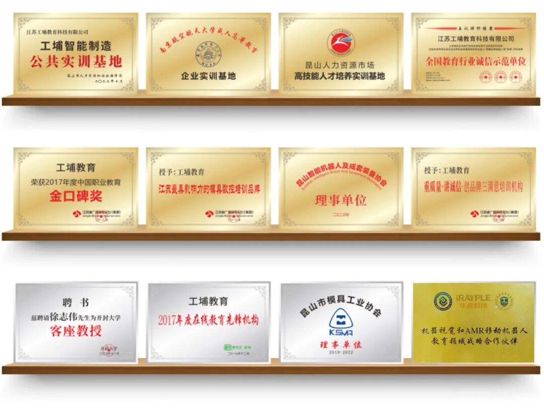 工埔教育先后荣获昆山市高技能人才公共实训基地,民办学校办学许可证,中国职业教育金口碑奖、全国教育行业诚信示范单位,昆山人才资源市场高技能人才培训基地,2022年口碑影响力职业教育品牌,3.15江苏十佳优质诚信职业培训示范基地等荣誉,工埔教育未来将坚持'为学员找未来,为企业造匠才"的办学宗旨,打造人才培训+人力资源+装备制造+园区运营的运营闭环,为社会培养更多的复合型人才,致力于打造智能制造高技能工业人才培养的领军品牌。