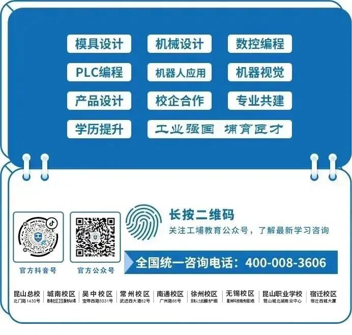 工埔教育总部位于昆山市,后在苏州,常州,无锡,徐州,南通成立了占地10000平方的八家实训基地+一家职业培训学校,累计投资3800万购买实训设备,拥有30台工业机器人,20台高端数控机床,800台PLC实训设备,高配置计算机500台,包括五轴加工中心与五轴车铣复合设备,年招生5000人,开设工业机器人,PLC编程培训,CNC数控编程,非标机械设计,机器视觉培训,模具设计,产品设计,CAE分析等热门专业。工埔教育三维循环与OMO融合的教学模式,即:一教学、二练机、三实战。采用国内专业的智能制造工业人才培养体系和教材,办学10年来,累计为社会培养了25000名高技能工业人才,学生的就业薪资、就业率、就业质量、以及职业发展潜力,都远超出了未经过职业培训的普通高校毕业生,得到了众多用人单位的的大力认可,技能人才输出常年供不应求。